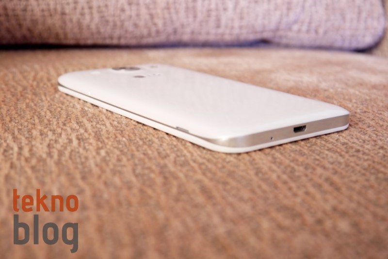 Yukarıda da belirttiğimiz gibi Optimus G Pro’nun tuşları tek elle kullanırken rahatlıkla erişilecek şekilde yerleştirilmiş. Sağ kenarda güç butonu yer alırken sol kenardaysa yukarıdan aşağı doğru hızlı işlem ve ses kademe tuşları bulunuyor. Altta mikrofon ve micro USB portu bulunurken üstte de 3.5 mm. kulaklık jakı, ikinci mikrofon ve kızılötesi port yer alıyor. Arkada 13 megapiksel kamerayı, bunun sağına yerleştirilmiş LED flaşı ve soluna konumlandırılmış hoparlörü görüyoruz. Kameranın biraz altında da LG logosu bulunuyor.