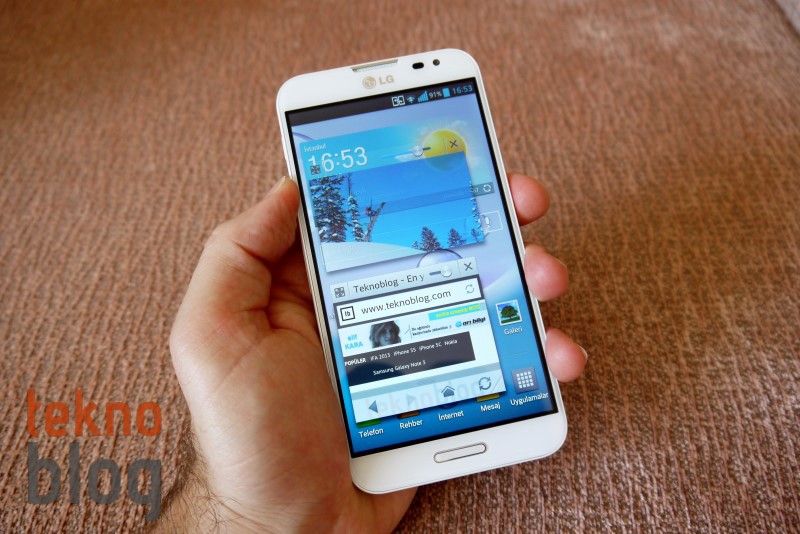 Bunun bir nedeni LG Optimus G Pro’da yüklü gelen Optimus UI 3.0 kullanıcı arayüzü olabilir. Birçok ön yüklü uygulama, bileşen ve özelleştirme barındıran bu kullanıcı arayüzünün Optimus G Pro’yu kullanılması daha zevkli bir telefon hâline getirdiği bir gerçek. Ancak testlerde Optimus G Pro’nun biraz daha aşağıda kalan rakamlar elde etmesine neden oluyor gibi görünüyor. Ancak Optimus G Pro’yu tek başına değerlendirip pratikteki performansına baktığımızda durumun hiç de kötü olmadığını belirtmemiz gerekiyor. İki farklı QSlide penceresinin aynı anda kullanımı, bunların ekranda sürüklenmesi, kullanıcı arayüzü geçişleri gibi detaylarda Optimus G Pro gayet pürüzsüz ve baş ağrıtmayacak şekilde çalışıyor.