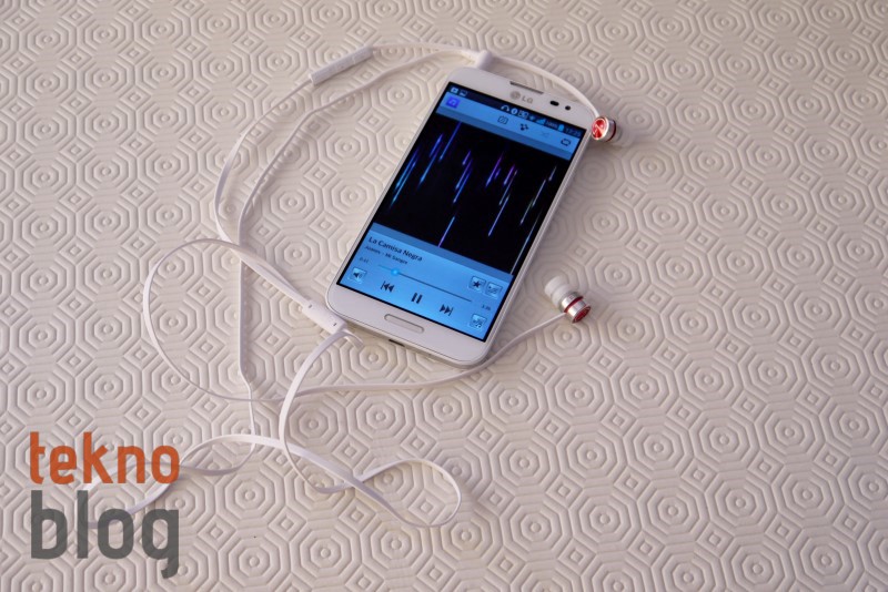 LG Optimus G Pro’nun kutusundan QuadBeat Pro adında ilginç görünüme sahip topuzlu kulakiçi kulaklık çıkıyor. Yassı ve kalın kabloları kolay kolay karışmayan bu kulaklık sayesinde ortamdan soyutlanarak müzik keyfi yaşayabilirsiniz. Kulaklığın ses kalitesi oldukça başarılı. Ayrıca kulaklık takıldığında aktifleştirilebilen Dolby Mobile’ı kullanarak müziğin bas ve tizini özel olarak ayarlanmış bu profile uygun olarak değiştirebilirsiniz. Ne var ki, Dolby Mobile profilini pek beğenmedik, diğer profiller biraz daha tercih edilesi duruyor. Arkadaki hoparlörün ses çıkışı bir akıllı telefon için yeterli seviyede, ancak Samsung Galaxy S4 veya HTC One gibi akıllı telefonların verdiği çıkıştan çok daha düşük seviyede. LG bu büyük telefona daha büyük ve güçlü bir hoparlör ekleyebilirdi.
